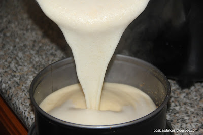Vertemos esta mezcla sobre el batido de yemas, azúcar y maizena que tenemos reservado. Sin dejar de batir en ningún momento para evitar que con la leche caliente se cocinen las yemas.